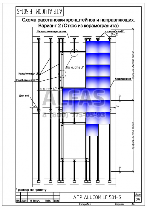 Фасадная система Alucom LF 501-S под Фасадный керамогранит